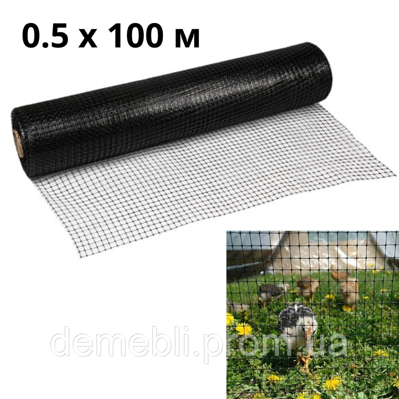 Універсальна вольєрна сітка для птиці 0.5 х 100 м пластикова комірка 12 х 14 мм рулон (Agro-А00494061)